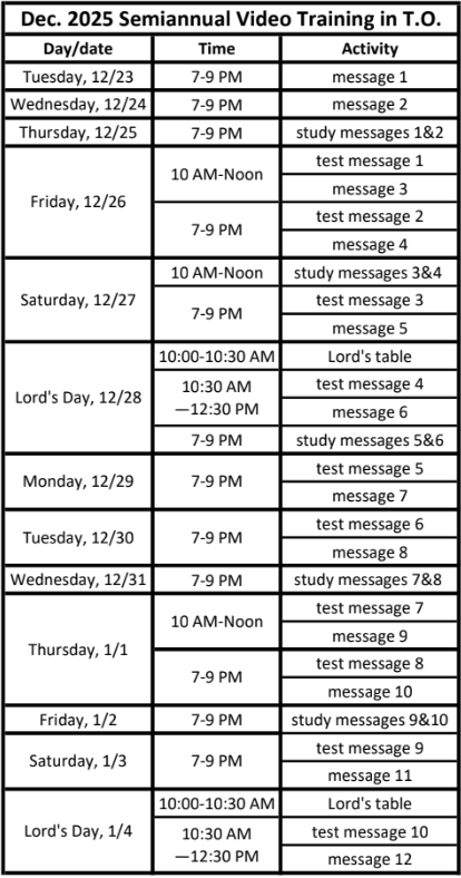 B. Two open meetings (Video only), Lord’s Day mornings, December 28 & January 4.