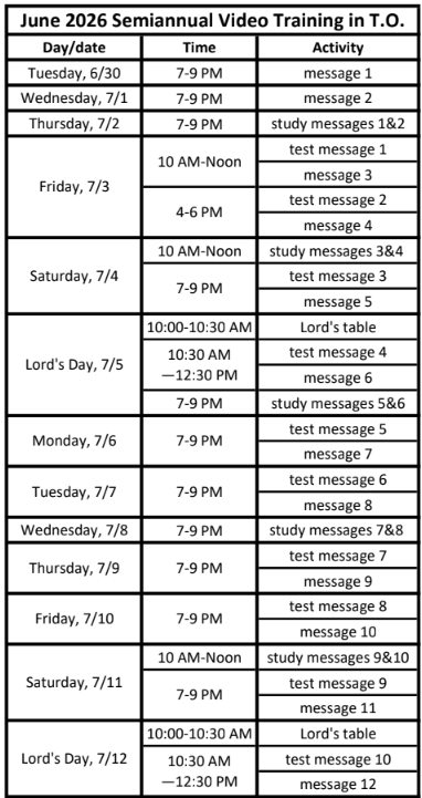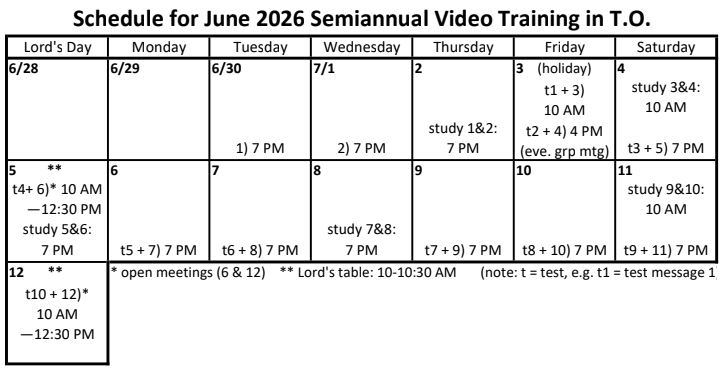 B. Two open meetings (Video only), Lord’s Day mornings, July 5 & 12;
